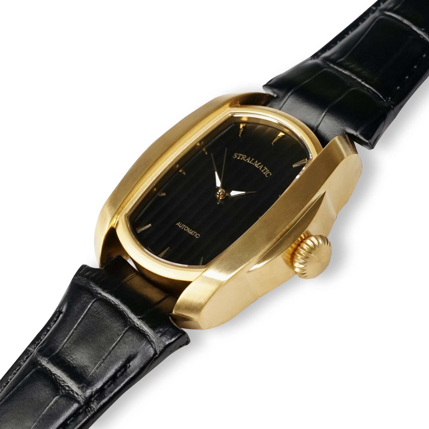 - goldfarbenes Edelstahlgehäuse aus 316 L Uhrmacherstahl, handgearbeitet